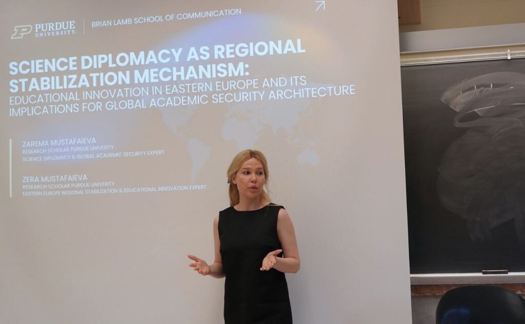 The authors of the monograph — sisters Zera and Zarema Karashaisky Mustafaieva, PhD candidates and Visiting Scholars at the Brian Lamb School of Communication at Purdue University — have structured the book as a judicial dossier. Zera specializes in cognitive warfare, media representation, and peacebuilding. Zarema focuses on strategic communications, hybrid information warfare, and autochthonous rights under international law. For three years, both have worked under the academic supervision of Dr. Stacey Connaughton, Professor and Director of the Purdue Policy Research Institute.